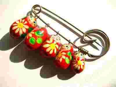 Broszka agrafka z Matrioszkami wykonana przez artystę malarza z Rosji.