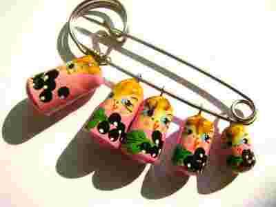Broszka agrafka z Matrioszkami wykonana przez artystę malarza z Rosji.