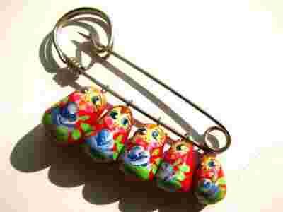 Broszka agrafka z Matrioszkami wykonana przez artystę malarza z Rosji.