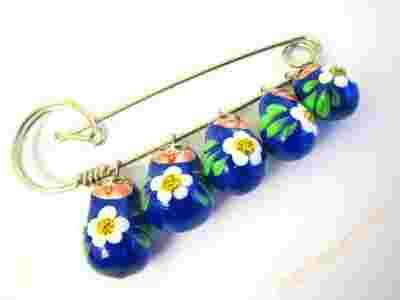 Broszka agrafka z MATRIOSZKAMI wykonana przez artystę malarza z Rosji.
