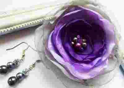 BROSZKA HAND MADE KWIAT 9CM + KOLCZYKI GRATIS