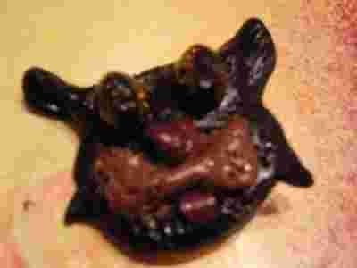 Broszka- kot z fimo z natur.bursztynami Monita Art