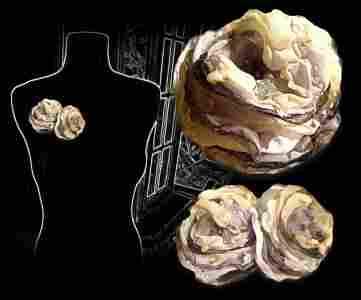 Broszka - kwiat artystyczny - BIEL, SREBRO, BEŻ