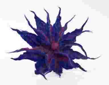 Niezwykle efektowna broszka w formie dwu warstwowego kwiatka. Filcowana& na mokro z różnorodnych rodzajów wełny owczej. Zapięcie broszkowe w kolorze srebra.
