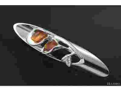 BROSZKA KWIATEK Z BURSZTYNEM posrebrzana rr74