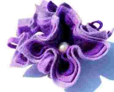 Broszka perełki fiolety kwiat filc