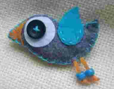 broszka ptaszek filc ręcznie szyta