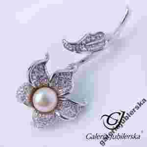 BROSZKA SREBRNA KWIAT Z PEREŁKĄ NA PREZENT
