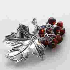 Broszka srebrna z bursztynem, bursztyn -srebro