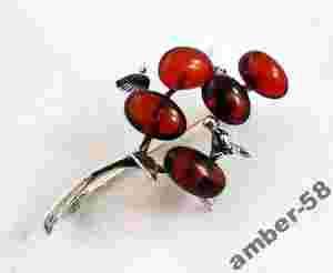 Broszka srebrna z bursztynem-bursztyn,srebro 925