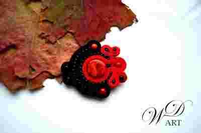BROSZKA SUTASZ CZERWONO CZARNA Z KORALEM
