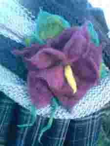 Przedmiotem mojej aukcji jest wykonana własnorecznie przeze mnie broszka metodą filcowania naturalnej wełny na morko. Kolory to fiolet wpadajacy w bordo z zielonym listkiem i zółtym jezykiem... . Wymiary broszki ok 23cm na 25cm.Broszka stanowi dodatek do płaszcza, żakietu, swetra, szala, torebki bądz kapelusza...Dokładam wszelkich staran aby broszki miały doskonały kształt i niepowtarzalny dlatego tez nigdy nie wykona sie identycznej broszki, ewemtualnie podobna.:):):) Broszka posiada wygodne zapięcie. UWAGA!!!!!! Tylko teraz przy zakupie 2 sztuk broszek przez "KUP TERAZ" trzecia sztuka GRATIS!!!!! wybrana losowo !!! Istnieje mozliwosc kupna kolczykow w kolorach broszki na zamowienie. Zapraszam serdecznie. Ps. moge również wykonac cos na zamowienie indywidualne wykonuje równiez bukiety w koszach "różyczki z krepiny" Polecam inne moje aukcje..wicej wiadomosci pod nr tel 663[zasłonięte]621