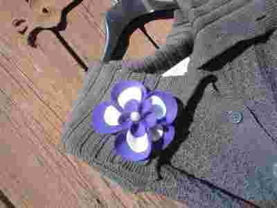 kwiat wykonany z filcu, przyozdobiony koralikami. Możliwosc wykonania na zamowienie w innych kolorach. Wymiary broszki 10cm x 10cm. Kolor fiołkowy fiolet i biały przy zakupie 2 szt przy opcji kup teraz 1 szt wybrana losowo gratis!!! Jesli kupujesz wiecej rzczy pytaj o koszt dostawy ...