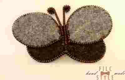 Broszka z filcu, piękny szaro-grafitowy motyl