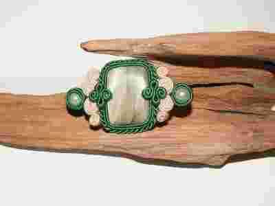 Broszka zielona z beżem sutasz soutage