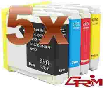 5 x Tusz Brother LC1000 (1x Cyan, 1x Magenta, 1x Yellow + 2x Czarny)