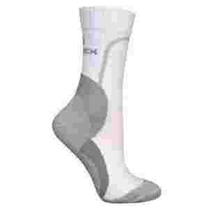 Skarpety typu unisex TENNIS CLASSIC o długości do połowy łydki wykonane z dwuwarstwowej, oddychającej dzianiny, z bawełny z domieszką przędzy polipropylenowej oraz poliestrowej przędzy C0MFORTEL (PES). Włókno poliestrowe jest wytrzymałe i odporne na mechacenie. Włókna polipropylenowe w warstwie wewnętrznej odpowiadają za skuteczne odprowadzanie wilgoci na zewnątrz, co sprawia, że stopa pozostaje sucha nawet podczas intensywnego wysiłku. Zastosowane w przędzy polipropylenowej jony srebra mają właściwości antybakteryjne - hamują rozwój bakterii. Zapewnia to długotrwały komfort użytkowania oraz ogranicza powstawanie brzydkich zapachów.