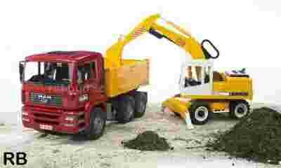 Zawartość opakowania: KOPARKA LIEBHERR + WYWROTKA MAN TGA