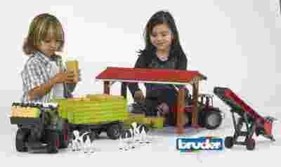 Zabawki marki Bruder to modele rzeczywistych maszyn w skali 1:16. Wykonane są z najwyższej jakości tworzywa sztucznego, odzwierciedlają w drobnych szczegółach oryginalne pojazdy, przeznaczone są dla dziec. Zabawki BRUDER realistyczne kopie, dużo funkcji, wyprodukowane w Niemczech. Traktory, agregaty, kombajny, opryskiwacze, owijarki i wiele innych.