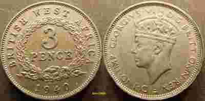 Brytyjska Afryka Zachodnia 3 pensy 1940 KN