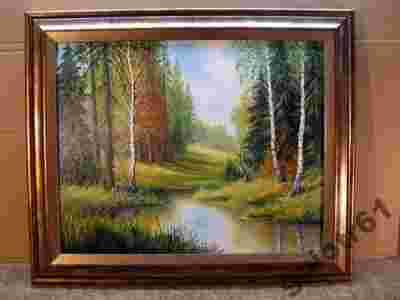 BRZOZY -OLEJ- PŁÓTNO -RAMA 60 X50 CM