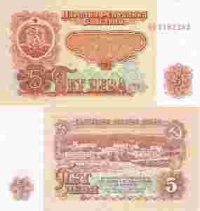 BUŁGARIA 5 LEWA,LEVA 1974 P-95 UNC