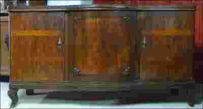 Duży i ciekawy bufet Art Deco z okresu międzywojennego. Mebel wcześniej był kredensem. Nadstawka uległa zniszczeniu, więc dziś mebel może 'pracować' jako duży bufet (już bez nadstawki). Dębowy solidny i pojemny mebel. Drzwi środkowe głęboko profilowane. Do ozdoby tego dębowego mebla użyto forniru orzechowego. Na środkowych drzwiach małe aplikacje snycerskie na rogach okleiny orzechowej. Mebel na profilowanych nogach.