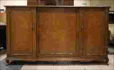 Komoda w stylu chippendale, orzech. Mebel niepozorny do momentu kiedy ... otworzymy drzwiczki. Wtedy naszym oczom ukazuje się widok wnętrza, jakiego raczej się nie spodziewaliśmy. Zamiast półek bądź szuflad w środku znajduje się rozkładane łóżko. Wprawdzie jednoosobowe ale gabaryty mebla nie pozwalają na więcej. Fakt ten przemawia zresztą na korzyść mebla, ponieważ znajdzie on swoje miejsce w każdym, nawet niewielkim pomieszczeniu.