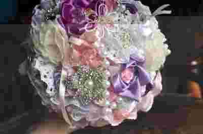 WSZYSTKIE ELEMENTY ( KWIATY MATERIAŁOWE, TIULOWE, SATYNOWE, KORONKOWE ITP, WYKOŃCZENIE RĄCZKI) SĄ WYKONYWANE OD POCZĄTKU DO KOŃCA RECZNIE Z DODATKIEM LICZNYCH OZDÓB FLORYSTYCZNYCH KORALIKÓW ,KRYSZTAŁKÓW BROSZEK, CEKINÓW MUSZKI ITP...