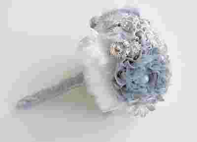 Bukiet ślubny z broszek, retro, srebrzysty, piórka