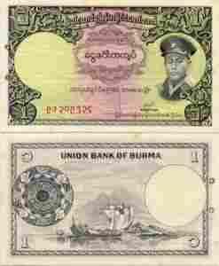 Burma 1 Kyat P-46 1958 Stan I- UNC-