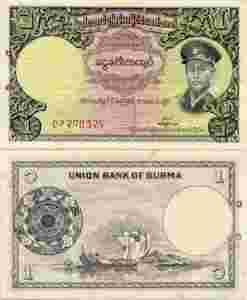 Burma 1 Kyat P-46 1958 Stan I- UNC-
