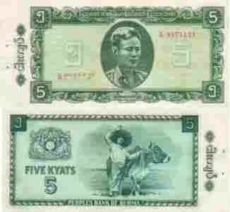 Burma 5 Kyat P-53 1965 Stan I- UNC-