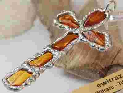 Bursztyn Witraż KRZYŻYK Tiffany Autorski Zawieszka