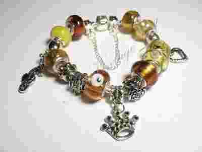 Bursztynowa bransoletka modułowa serce, SREBRO