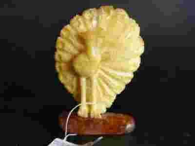 Figurka pawia wykonana z bursztynu