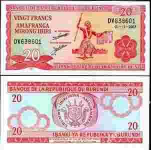 Burundi 20 Francs / Franków 2007 ..UNC.. P-27d