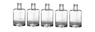 Szklana kwadratowa butelka w kolorze bezbarwnym . Butelka z przeznaczeniem do skoków , nalewek czy innych trunków