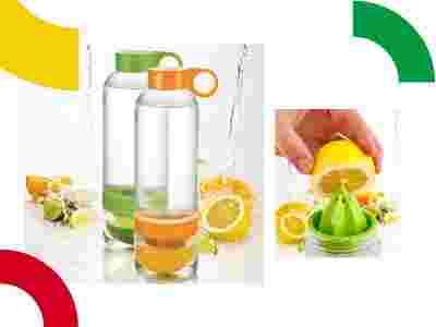 Jak użyć: wystarczy wycisnąć sok z połówki limonki i sokowirówka uzupełni butelkę sokiem. Praktyczny filtr zapobiega wnikaniu pestek do napoju.