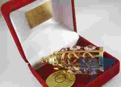Figurka Butelki platerowana 24 karatowym złotem oraz ozdabiana kryształkami firmy SWAROVSKI.