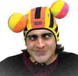 Kolorowy kartonik zawiera: dwie czapeczki z rzepami oraz trzy piłeczki