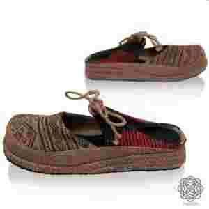 Buciki uszyte z tkanych na drewnianych krosnach ręcznych,