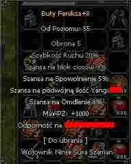 Witam mam dziś do sprzedania butki które są idealne dla każdej klasy do pvp jak i do pvm . Dzięki bonowi 5% spowolnienie masz wielka szanse by lejąc metina nie wyleciały z niego moby ( stworki ) , bon 1000 hp doda ci możliwość przetrwania tam gdzie jest naprawde ciężko , a bon 8% omdlenie pozwoli ci omdlić moby nie urzywając skili .