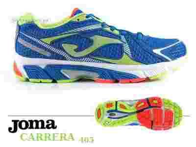 Buty joggingowe hiszpańskiej firmy Joma model Carrera 405. Model ten przeznaczony jest dla neutralnych i lekkich pronatorów o wadze powyżej 85kg. Buty te charakteryzują się wysoką jakością wykonania, zapewniają odpowiednią amortyzację stopy i cyrkulację powietrza. Model został wyposażony w specjalną wkładkę korygująca pronację. Ponadto buty posiadają wiele innowacyjnych systemów, dzięki czemu zapewniają wysoki komfort użytkowania i stają na równi z konkurencją oferując przy tym bezkonkurencyjną cenę.
