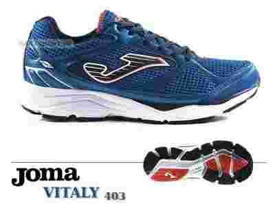 Buty joggingowe hiszpańskiej firmy Joma model Vitaly 403. Model przeznaczony dla biegaczy neutralnych i lekkich pronatorów o wadze od 70 kg do 85 kg. Buty charakteryzują się wysoką jakością wykonania, zapewniają odpowiednią amortyzację stopy i cyrkulację powietrza, a podeszwa sprawdzi się w każdym terenie. Idealne dla ludzi, którzy chcą zacząć biegać oraz tych którzy biegają okazjonalnie, jak i tych którzy biegają regularnie. To doskonałe połączenie jakości do ceny.