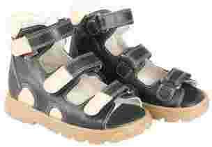 Sandał z wysokim sztywnym zapiętkiem. Wykonany z naturalnych surowców, miękkiej licowej skóry koziej. Posiada podeszwę diagnostyczną, obcas Thomasa i sztywny zapiętek.