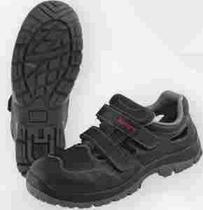 Bezpieczne sandały wykonane z perforowanej dwoiny skórzanej.