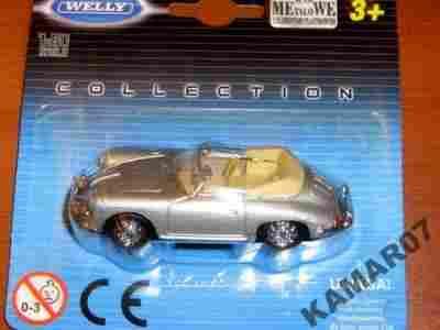 CABRIO PORSCHE 356B WELLY 1:60 SREBRNE
