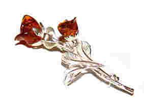 Srebrna róża z bursztynem bałtyckim