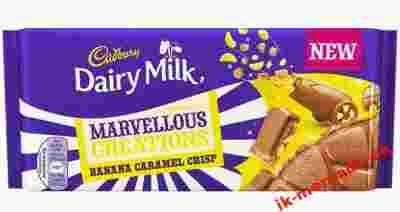 Czekolada mleczna Cadbury z kawałkami bananów i karmelu .